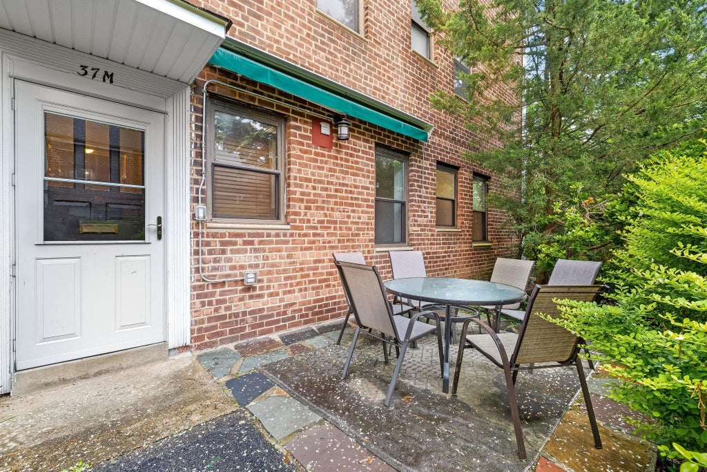 Nestled in the heart of Hartsdale sits a serene two bedroom/+Den, two full bath home in Country Club Ridge. A lush garden style co-op community spread over 15 beautiful acres. This wonderful unit has its own entry on 1st floor with a beautiful patio, complete with attached awning and outdoor lighting! The kitchen offer stainless steel appliances and granite counter tops. The massive living room flows perfectly into the dining area with gorgeous hardwood floors throughout! Every room has large windows bringing the outside in. The primary bedroom has it own full bath and walk in closet. The 2nd bedroom offers two large double closets. The Den is great space for an at home office, playroom or possible 3rd bedroom. You are completed immersed in nature! As you exit this beautiful home you are just a leisurely walk ( aprox. 7 Minutes) to: Hartsdale Train Station (only 35 minutes to Grand Central Station), Bus, Restaurants, Bakeries, Dry Cleaners, Farmers Market & Fitness Center. Close to School, Close to Shops, Close to Supermarkets. The Impeccably maintained grounds offer BBQ areas, a huge community pool with picnic area, two playgrounds and a community vegetable Garden! Laundry is just steps away in building 35 and garbage is conveniently picked up from your front door every morning by the maintenance crew. One free unassigned parking spot is included as well as heat and hot water. Take a dip in the pool, cycle the Bronx River Parkway on Sundays ,stroll through the farmers market or take a hike/walk in the trailway. Enjoy the glorious colors of every season or just kick back and relax on your own private patio with morning coffee or while grilling with a glass of wine, either way this move in ready unit will make you feel like your living on an grand resort every day! One assigned parking spot. Plenty of street parking. Private garage $100.00 monthly (wait list) Shared garage $75.00 monthly (wait list)