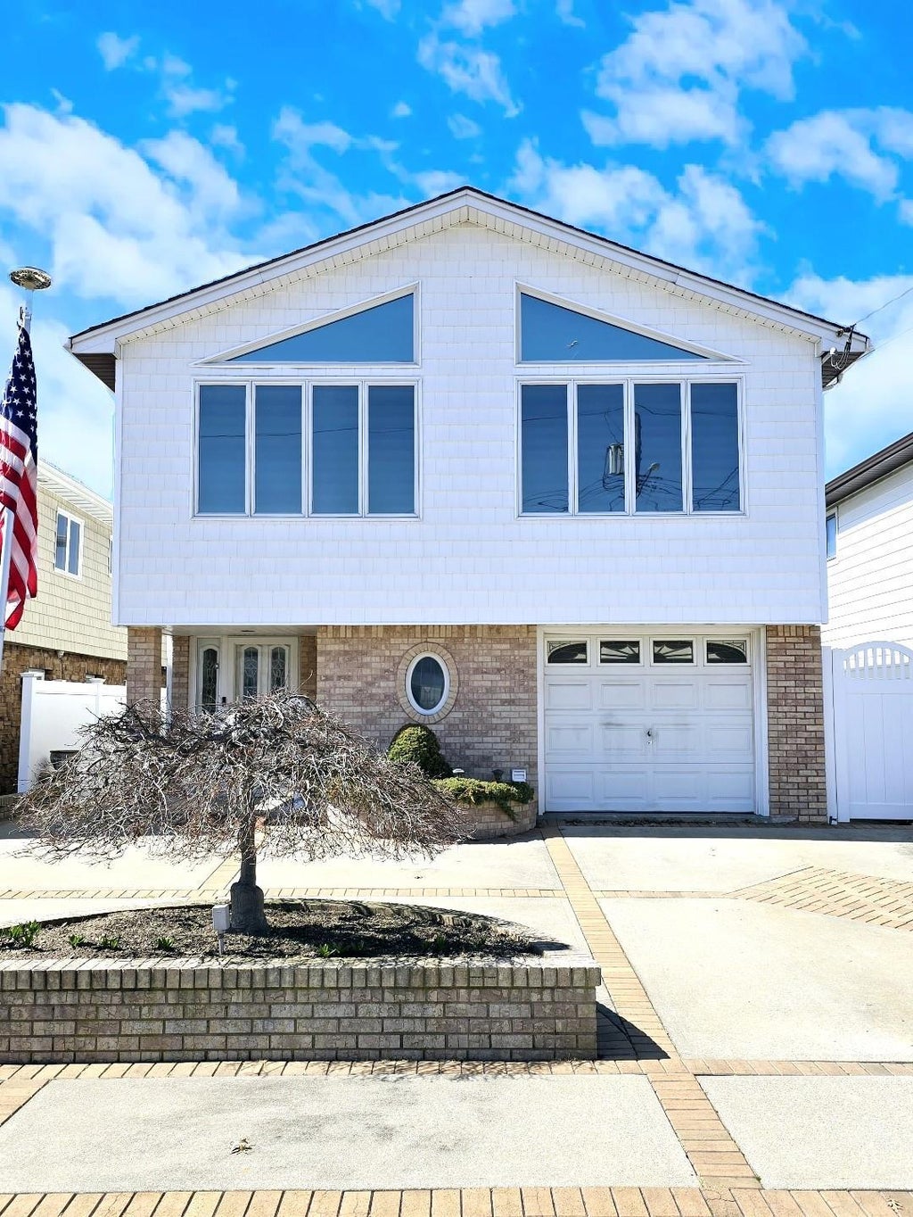 Opulently renovated New Howard Beach high ranch with four bedrooms, two bathrooms, two eat-in-kitchens, and two open concept living room/ dining rooms. On the main level you will find the most exquisite chef's kitchen featuring a wide-line quartz island, custom inlay cabinetry, contemporary angular range hood, and pendant lighting. Radiant heat throughout the gorgeous European barn-style tile is your FOURTH heat source, as this home also has baseboards, ductless split units, and a floor-to-ceiling stone gas fireplace. Unique triangular windows let in sunlight, and frame the vaulted ceilings, giving the space an incredibly bright and crisp appearance. The flat screen TV, which is yours to keep, has been custom framed on the living room wall. On this level you will also find three well proportioned bedrooms, and an oversized full bath with double entrances to the hallway as well as the primary bedroom. Downstairs you will find a full one bedroom guest quarters suite complete with an oversized living room/ dining room, eat-in-kitchen, and fully renovated bathroom with large stand up rain style shower. Sit beside your fireplace during winter and sip hot chocolate as you enjoy company in this downstairs space. Separate laundry and utility room. Large yard with new concrete pads and a grassy perimeter. Attic for storage. Private driveway. Brand new roof and water heater. This house is impeccable and will not last.