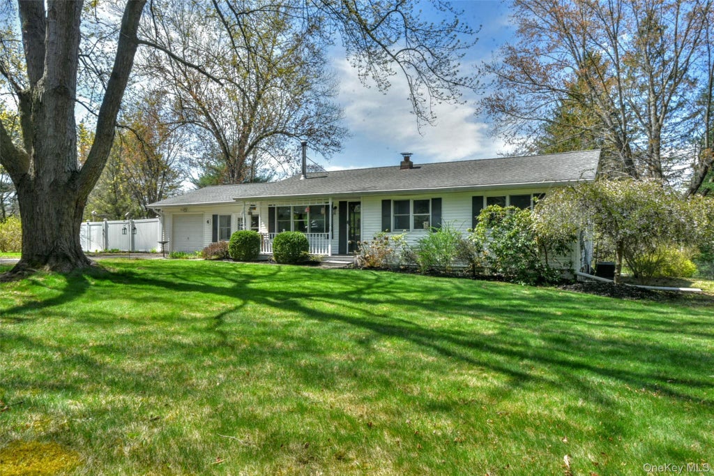 FULLY AVAILABLE! Enjoy the ease of one level living in this beautifully maintained 2 bedroom, 2 bath ranch set on a private, peaceful corner, level lot offering over an acre of land with bordering pine trees and a variety of flowering specimens in the desirable Dogwood Knolls Estates. Full of character, charm and expansion potential., this ranch home was originally three bedrooms , and can easily be converted back to suit your needs-whether you are upsizing, downsizing for a flexible floor plan. The inviting front porch leads into a bright open living space featuring a cozy wood burning stove for relaxing evenings . The spacious kitchen and dining areas flow together for ideal entertaining and the finished breezeway used as a family room adds to extra year round living space. The spacious primary suite offers 3 closets. The second bedroom and updated full hall bath complete the first floor. The lower finished level provides more living space for an office, home or guest quarters with a convenient full bath and storage area. Step outside to a private fenced yard and patio with a serene koi pond with a waterfall - your personal backyard retreat. The expansive backyard and side yard offer endless possibilities. Great location with easy access to local shops, dining and commuter routes- Taconic, RTE 82, I84, NYS Thruway, Newburgh Beacon and Mid-Hudson Bridges. This is your chance to own a versatile home with peaceful vibes and room to grow in a well-established neighborhood.