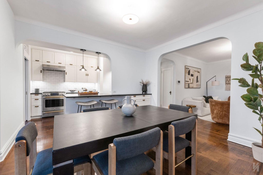 Timeless Elegance in Jackson Heights’ Most Coveted One-Bedroom Layout Step into timeless elegance with this exceptional one-bedroom home at The Madison, a distinguished prewar cooperative located in the heart of the Jackson Heights Historic District. This is the building’s most sought-after and spacious one-bedroom layout—rarely available and bathed in natural light from unobstructed eastern and southern exposures overlooking serene English Garden Homes. A gracious entry foyer with a large closet and original built-in welcomes you into the home, setting the tone with both charm and practicality. The expansive living and dining area offers wonderful flexibility for entertaining or everyday comfort. A separate dining space easily accommodates a table for six, while a cozy sitting alcove provides the perfect spot for morning coffee or a quiet evening with a book. The thoughtfully renovated kitchen is a chef’s dream, featuring custom ceiling-height cabinetry with soft-close doors and unlacquered brass hardware that will develop a beautiful patina or can be polished to shine. Brazilian soapstone countertops provide generous prep space, and a cleverly designed peninsula with pendant lighting adds additional seating and storage while maintaining an open flow into the living area. The panel-ready refrigerator and dishwasher blend seamlessly into the cabinetry, while a five-burner stove, Zephyr vented hood, under-cabinet task lighting, and two timeless schoolhouse ceiling fixtures round out the high-end details. Just off the kitchen is a versatile bonus room—perfect as a home office, guest space, den, or playroom. It can be accessed through a pocket door from the kitchen or French doors from the sitting area, both topped with hand-operated Federal-style transoms. The king-sized bedroom is located in the sunny southern wing and features three large windows and two spacious closets. The windowed bathroom offers a walk-in shower, separate soaking tub, and a vanity with a medicine cabinet for extra storage. Prewar charm is found throughout, including arched entryways, inlaid parquet floors, soaring coved ceilings, and custom built-ins. The Madison is an elevator building offering a live-in superintendent, laundry room, private storage, and a beautifully landscaped shared garden. Located just moments from Travers Park, the Sunday Greenmarket, beloved cafés, and the 82nd Street subway station, residents enjoy the perfect blend of city convenience and community charm. The monthly maintenance is $1,093, and there is currently a $233 monthly assessment in place. The building is pet-friendly, and limited subletting is allowed.