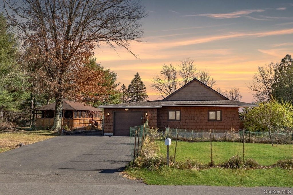 Tucked in a peaceful setting, this 3-bedroom, 1-bath ranch invites you to slow down and savor life’s simple pleasures. Step onto the wrap-around porch and you’ll be greeted by the gentle sway of grapevines, the shade of mature fruit trees, and a landscape that whispers “home” the moment you arrive. Inside, the charm continues with warm hardwood floors and pine-clad walls and ceilings that create a cozy, cabin-like atmosphere. The open layout blends living, dining, and kitchen spaces together—perfect for lively dinners, lingering conversations, or quiet nights in. Down the hall, three comfortable bedrooms and a full bath provide restful escapes, while a versatile bonus room waits to become your office, guest nook, or creative studio. Then comes the hidden treasure: a fully built-in cedar sauna. Rarely found in homes at this price point, it offers a spa-like ritual just steps from your bedroom—whether you’re seeking a morning recharge or an evening wind-down. But the magic doesn’t stop there. Out back, an all-season detached gazebo transforms into your own private lodge, complete with hot tub, fireplace, and pool table. Imagine hosting game nights, enjoying snowy evenings by the fire, or stargazing with friends in total comfort. Beyond your doorstep, adventure and entertainment await. Spend weekends at Bethel Woods Center for the Arts, splash with the kids at the Kartrite Indoor Waterpark, or test your luck at Resorts World Casino—all just a short drive away. And with quick access to Route 17 and nearby transit, convenience is always within reach. This isn’t just a home—it’s a lifestyle. Come experience it for yourself. Schedule your private showing today and see why Kiamesha Lake feels like the getaway you’ve been waiting for.