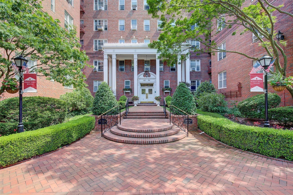 WELCOME TO FOREST HILLS SOUTH. THE PREWAR GEM OF FOREST HILLS, high first floor, Very sunny and spacious apartment with Views from all windows. Beautiful apartment with classic elegance and charm, offers large entry foyer that can be used as a dining area or a home office, spacious Sunken Living Room, Fully renovated Windowed Kitchen with modern cabinets, Quartz countertops and new stainless steel appliances, fully renovated windowed Bathroom with a tub and a shower stall, the primary bedroom is very spacious and can fit a King size bed, the second bedroom is sizable as well, all Hardwood Floors throughout the apartment, 9Ft Ceiling and many charming details. A TUEN-KEY APARTMENT. Located in Forest Hills South, a well-maintained and financially sound co-op. It features seven pre-war buildings with architectural beauty & charm, elegant lobbies, and hallways, surrounded by beautifully manicured English Gardens and water fountains with private sitting area for residents. Elevator building with great amenities, doorman service, live-in super, on-site maintenance staff, laundry room, storage & bike room, GYM, kids’ playroom, reading lounge and community room. Centrally and conveniently located, near E & F Express trains, Buses, LIRR, major highways, just minutes to the fashionable Austin Street shops, fine restaurants, movie theatres, Forest Hills Stadium, the West Side Tennis Club and the newly opened Trader Joe’s. Zoned to top rated P.S.196 school. 20% Down Payment No Pets