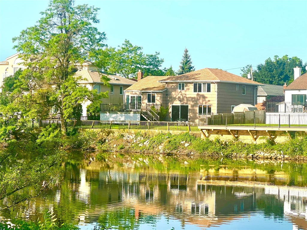 Welcome to this spacious and unique split-level home, perfectly situated on a picturesque waterfront lot (70x100) offering serene lake views and tranquil living. With 4–5 bedrooms and 3 full baths, this home is ideal for those seeking space, comfort, and beauty both inside and out. The main level features a welcoming foyer, den, bedroom, full bath, and a private study—ideal for guests or a home office. Upstairs, enjoy an open layout with vaulted ceilings throughout the living room, dining room, and a granite and wood eat-in kitchen designed for both daily living and entertaining. The top floor boasts three generously sized bedrooms and two full baths, including a luxurious marble-clad primary suite. A fully finished basement adds versatile living space, perfect for a playroom, gym, or media room. This home is equipped with gas hot air heating and central air, both on one zone, along with a separate gas hot water heater. A scuttle attic offers convenient storage, while the private deck provides a peaceful setting to relax and take in stunning lakefront views. Don’t miss this rare opportunity to own a lakeside retreat that truly has it all—comfort, elegance, and an unbeatable setting.
