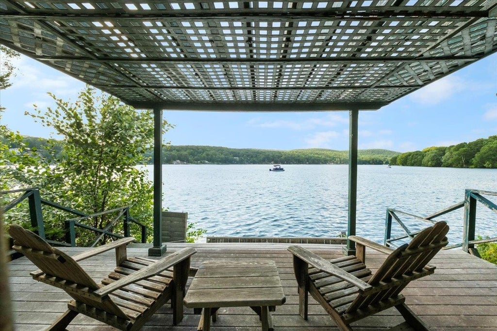 Welcome to This Stunning Center Hall Colonial on Whaley Lake. Tucked back from the road for ultimate privacy, sits this exceptional lakefront home that offers the perfect blend of timeless charm, modern convenience, and breathtaking views of Whaley Lake. As you step into the foyer, you're immediately greeted by elegance and sweeping water views. Designed with both luxury and functionality in mind, the home features a large chef’s kitchen with a spacious dining area, formal dining & living rooms, home office, a warm inviting family room with a raised hearth and wood-burning fireplace and expansive lake views from nearly every room. Gleaming hardwood floors run throughout the main level. Upstairs, the primary suite is a luxurious retreat with its own wood-burning fireplace, two walk-in closets, and a spa-like ensuite bath. Three additional bedrooms are bright, generously sized, and thoughtfully laid out. For added convenience there is a spacious mudroom off the attached two-car garage and a huge second-floor laundry room. The full-length deck spans the back of the house, offering spectacular, year-round views of the lake—perfect for entertaining or relaxing in nature’s beauty. Set on just over an acre with 206 feet of private lake frontage, this property also boasts its own private dock, lakeside cabana, and winch system for effortless kayak storage. A long, expansive driveway provides ample parking for guests. Located close to shopping, dining, major highways, Metro-North, and schools, this home is a rare lakefront gem offering privacy, luxury, and a truly unbeatable setting. This is lakefront living at its finest.