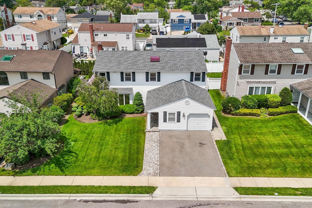 Welcome to 427 Benito St, a charming Colonial in East Meadow featuring a classic brick and vinyl exterior with great curb appeal. This 4-bedroom, 2.5-bath home blends comfort and updates throughout. Enter inside to discover a bright living room with vaulted ceilings and a skylight, a beautifully renovated kitchen with new appliances and stylish cabinetry, and split AC units for year-round comfort. The spacious layout includes generous bedrooms and modernized baths, offering flexibility and functionality for today’s lifestyle. Outside, enjoy a fenced backyard with an in-ground pool—complete with a new liner to be installed—plus a patio perfect for relaxing or entertaining. While the shed lacks a permit and the pool heater display doesn’t work, the home also offers a gas fireplace (burner needs replacement) and a tankless water heater (note: makes noise). Major updates include a 3-year-old roof and a 7-year-old gas boiler. Ideally located near parks, schools, shopping, and easy commuting options, this East Meadow gem is ready for its next chapter!