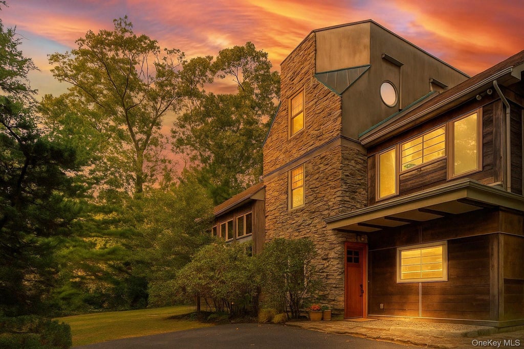 Situated on a peaceful tree-lined street just off Little Neck Road in Northern Centerport, this one-of-a-kind architectural gem offers timeless charm in the coveted Harborfields School District. Designed with character and intention, the 5-bedroom, 3-bath home showcases unique details rarely found elsewhere—exposed wood beams, oversized windows with verdant views, gleaming hardwood floors, and a cozy wood-burning fireplace. The main level features a guest bedroom with an en-suite bath, while the upstairs hosts generously sized bedrooms, including the primary suite with a walk-in closet and full bath. Set on a tranquil half-acre, the property includes a home gym and lush outdoor space perfect for relaxation or entertaining. A rare find and exceptional value in a highly sought-after neighborhood!