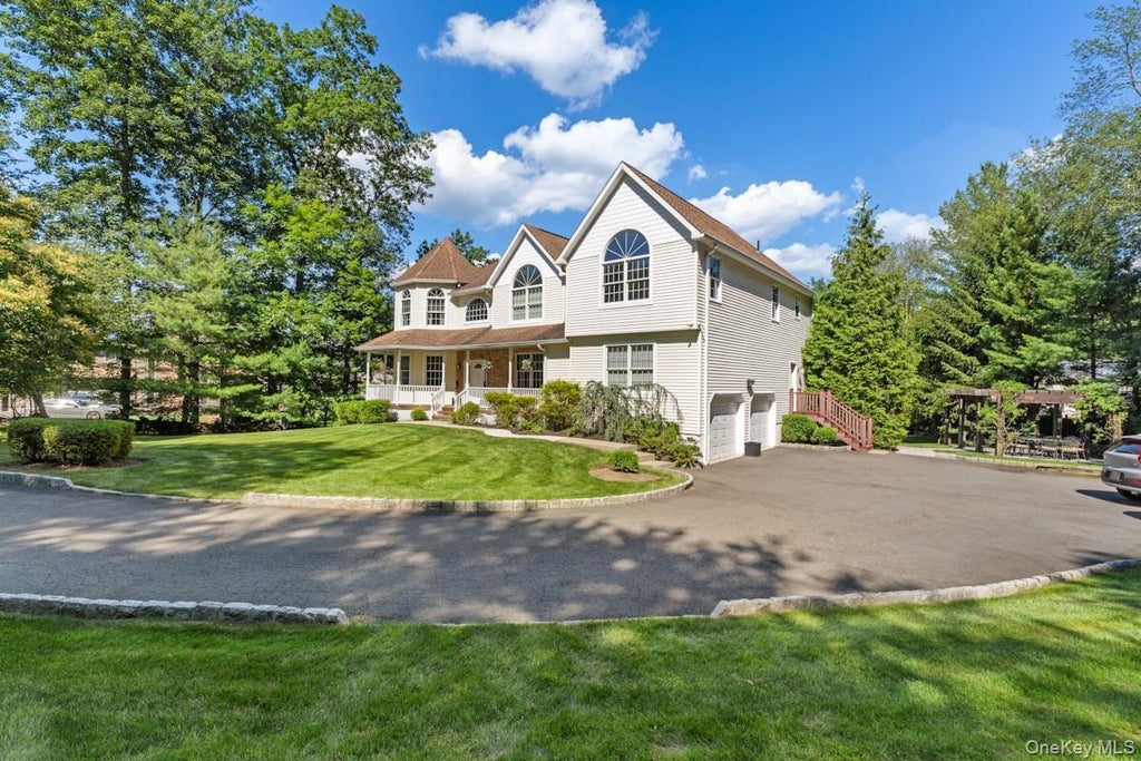 Welcome to 9 Ronwood Rd—the crown jewel of Chestnut Ridge! This 2004 custom colonial sits on 1.5 acres in a quiet cul-de-sac and offers 6,000+ sq ft of luxury living. Featuring 5 spacious bedrooms, 3 full baths, and a fully finished walkout basement . The grand primary suite spans the entire length of the home with cathedral ceilings, 3 walk-in closets, and a spa-like bath. Chef’s kitchen with cherry cabinetry, granite counters, slate floors, and open flow to a bright conservatory with pellet stove and panoramic views. Entertain outdoors with a heated pool, Jacuzzi, pergola, and pool house (kitchen, bath & changing area). A separate half-acre+ of wooded land offers potential subdivision with possible access from S. Pascack Rd—build an additional home or guest house (verify with town). Hardwood floors, gas fireplace, formal dining, home office, and central air. Quality construction, only one owner. A rare offering in sought-after Chestnut Ridge!
