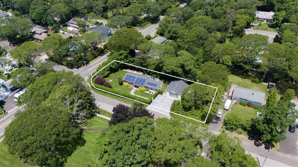 Near Shops, Public Transportation, Schools and Hampton Bays' many parks and beaches. Landscaped, fenced and sprinklered 0.37 acre corner lot complete with storage shed, vegetable boxes and concrete game table. This renovated ranch has 5 bedrooms (including a main floor primary ensuite bedroom) and 4 baths, with an eat-in kitchen, energy efficient appliances and a sunny dining area opening onto a huge rear deck with barbeque. The oversized, air conditioned, detached garage has a power lift and bathroom, perfect for your shop or hobbies. This home also features fully paid solar panels!