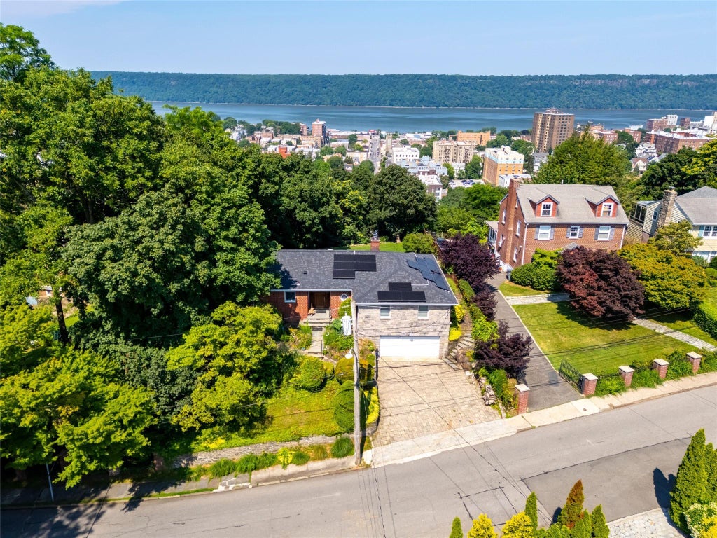 Welcome to this beautifully updated brick ranch-style home in Park Hill, offering stunning Hudson River views and just 20 minutes from Manhattan. This sun-filled residence features an open-concept layout with archways leading to the living room, dining area, and kitchen—highlighted by hardwood floors throughout. The kitchen boasts granite countertops, ample cabinetry, stainless steel appliances, and a breakfast-bar island with a sink and dishwasher. Enjoy seamless indoor-outdoor living with sliding doors to an enclosed sunroom and a spacious patio overlooking a large backyard, complete with an outdoor shower—perfect for future pool or hot tub installation. The primary suite offers a remodeled en suite bath and in-room laundry, while a second full bath features a luxurious double rain shower. Additional highlights include a two-car garage with EV charger, solar panels on a 3-year-old roof, and proximity to Ludlow Metro-North, Van Cortlandt Park, Tibbett’s Brook Park, and the Park Hill Racquet Club.