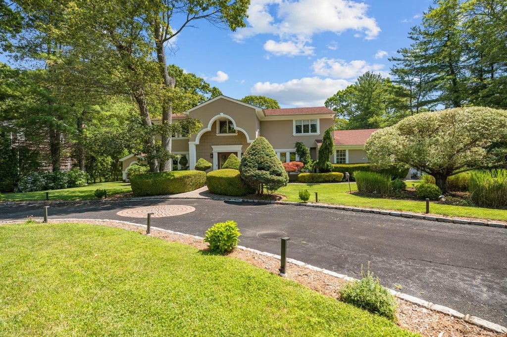 Welcome to 10 Faulkner Lane, a beautifully appointed estate offering space, style, and comfort on a full acre in one of Dix Hills’ most desirable neighborhoods. This 5-bedroom, 4.5-bath home features over 4,000 square feet of open, light-filled living space, with generously sized bedrooms—each boasting large closet space for practical luxury. The kitchen is equipped with granite countertops and a natural gas cooktop, flowing seamlessly into elegant entertaining areas. The spacious primary suite provides a peaceful retreat, while the sunroom offers year-round comfort with updated flooring, lighting, and its own air conditioning. Outside, the private backyard is designed for relaxation and entertaining, centered around a resurfaced in-ground pool with underwater lighting, a custom-fitted cover, and a modern pump and filtration system. The space is beautifully defined by a newly constructed deck and stone patio wall, while a built-in outdoor kitchen invites effortless gatherings. Two-zone landscape lighting and an automatic sprinkler system add both convenience and ambiance. Additional highlights include two central A/C systems, a new boiler and water heater, an upgraded electrical panel, and a grand circular driveway complemented by a freshly refinished stucco exterior.