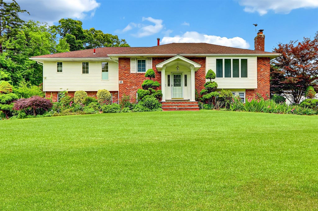Welcome to this stunning majestic style High Ranch house, beautifully updated and nestled on a quiet street. This property offers the perfect blend of comfort, privacy and timeless charm. This home boats large living room with fireplace, Formal Dining room, Master bedroom with attached full bath and walk in closet. Main floor has Living room, Dining, master bedroom, and 3 other bedrooms. Updated kitchen in less than 2 years. Windows are replaced with Anderson windows. An attached garage provides convenience and ample storage. Hardwood floors throughout. Lower level has huge family room with another fireplace, 5th bedroom, Full bath, laundry area. Sliders thru the dining room leads to a covered deck that overlooks a sparkling inground pool, creating an ideal space for outdoor entertaining, with a private backyard.