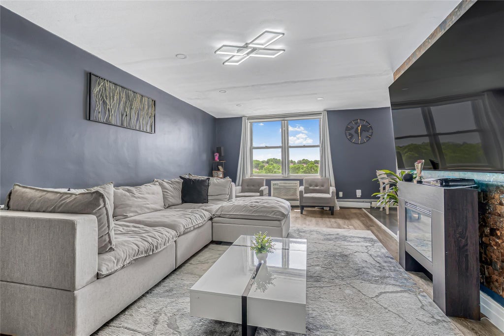 Incredible Opportunity! Junior 4 Unit In Valerie Arms. Spacious Top Floor One Bedroom Unit With Great Panoramic Views. Large Living and Dining Area with Lots Of Natural Light. Updated Kitchen With Quartz Countertops, Beautiful Tiled Backsplash and Stainless Appliances. Modern Updated Bath. Brand New Windows And Floors. Recessed Lighting Throughout. Parking Spot Included For A Fee. Full Service Building With Laundry, Gym, And Pool. Centrally Located With Easy Access To Highways, Schools, Shopping And Public Transportation. Top Rated Queens School District 26.