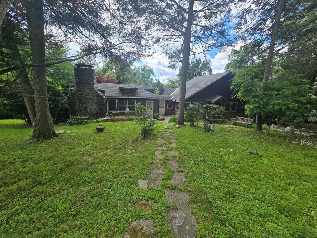 A Rare Storybook Escape with Endless Potential Calling all visionaries, investors, and dreamers—welcome to the Treehouse Estate, a one-of-a-kind property carved into the side of a mountain and tucked away on nearly 3 acres of serene woodland. This enchanting estate invites you to restore its timeless charm and unlock its true potential as a full-time residence, vacation home, or lucrative rental retreat. From the moment you arrive, the property feels like something out of a fairytale. A long stone wall frames the driveway, guiding you past a two-car detached garage and into the heart of the estate. Stone walkways and weathered benches dot the grounds, offering peaceful resting spots and a whimsical, almost Alice in Wonderland feel. Inside, you're greeted by the impressive stone backside of a grand fireplace—a true centerpiece that anchors the home’s warm, rustic character. Step further and find yourself in a sunroom-like living area flooded with natural light, complete with its own fireplace, perfect for cozy gatherings. The eat-in kitchen, featuring updated appliances, opens through French doors onto a porch overlooking the woods—a tranquil space for morning coffee or evening relaxation. What sets this home apart are its flexible living spaces: A one-bedroom apartment with a private wraparound porch and separate entrance. A studio apartment with its own entrance—ideal for guests, extended family, or rental income. The “Boat House,” a spacious bonus room accessed via a breezeway, complete with its own bathroom. Imagine transforming this space into a stunning spa-like retreat with a hot tub or sauna. Outside, a charming (though overgrown) staircase seems to disappear into the woods, offering even more potential for landscaping or secret garden pathways. While the home does need updates and restoration to bring it back to its full glory, its unique features, privacy, and versatile layout make it an extraordinary canvas for anyone with creative vision. Whether you dream of hosting family gatherings, operating a storybook Airbnb, or creating your own private woodland sanctuary, the Treehouse Estate is ready to inspire your imagination.