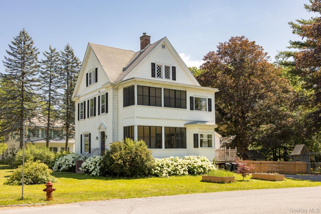 Take a step back to a simpler time in this charming Circa 1920 4 bed 3 bath Victorian style home. Located in the beautiful village of Red Hook, Dutchess county. The town once named Hardscrabble offers all the convenience of modern day life. Multiple excellent restaurants, supermarket, juice bar, a health food shop, art galleries, a Pilates studio and much more. The 2,559 square foot stately home stands tall and proud in the heart of the village. The corner parcel is two doors down from the library and the Bard shuttle. The home has many updates including the kitchen, bedrooms and outdoor patio. The interior exudes charm from its antique moldings, and stained glass window to the two screened in porches, one on each level. Two staircases lead you up to the second floor that boasts large bedrooms and an office. The third floor offers a large apartment, with sitting room, bedroom, bathroom and kitchenette. Make an appointment today to see this vintage home that’s convenient and carefree. A perfect opportunity to make that transition from city life to the Village, where community is celebrated.