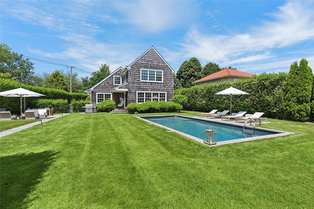 Welcome to Cedar Hedge House, where timeless Southampton charm seamlessly blends with the finest modern luxury. Tucked away behind mature hedging on a beautifully landscaped parcel in the heart of Southampton Village, this impeccably renovated 4-bedroom, 3.5-bathroom cottage offers the perfect balance of privacy, style, and convenience—just minutes from village shops and only a seven-minute drive to the beach. Renovated by Grisoro Studio with careful attention to detail, every inch of this approximately 2,600 square foot home feels refined and inviting. Sunlight pours into each room thanks to unobstructed exposures, creating a warm and welcoming atmosphere. The open-concept main floor features a chef’s kitchen with quartz countertops, brand-new Bosch appliances, and seating for up to 16 guests—ideal for weekend entertaining. A custom fireplace anchors the living area, where a bespoke inset television adds sophistication and function. With 10 well-placed closets, there's abundant storage for beachwear and beyond. Up the handcrafted steel staircase, the expansive primary suite stuns with soaring 20-foot vaulted ceilings, a serene private sitting room, and sweeping views of the grounds. Three additional guest bedrooms provide comfort and style, each with picturesque outlooks and ample space for family or friends. Outside, your private oasis awaits. Relax poolside by the heated saltwater pool or enjoy friendly competition on the professional-grade putting green. The cabana, outdoor shower, portico, and charming shutters add classic Hamptons touches, while bluestone walkways and app-controlled landscape lighting create an effortless al fresco ambiance. Grill, dine, and unwind under the stars with a backdrop of manicured greenery and the ultimate in outdoor living. With an expanded parking area for four vehicles and elegant curb appeal, Cedar Hedge House is more than just a weekend retreat—it's a lifestyle. Comfort meets sophistication, design meets practicality, and privacy meets prime location. This is Southampton at its finest.