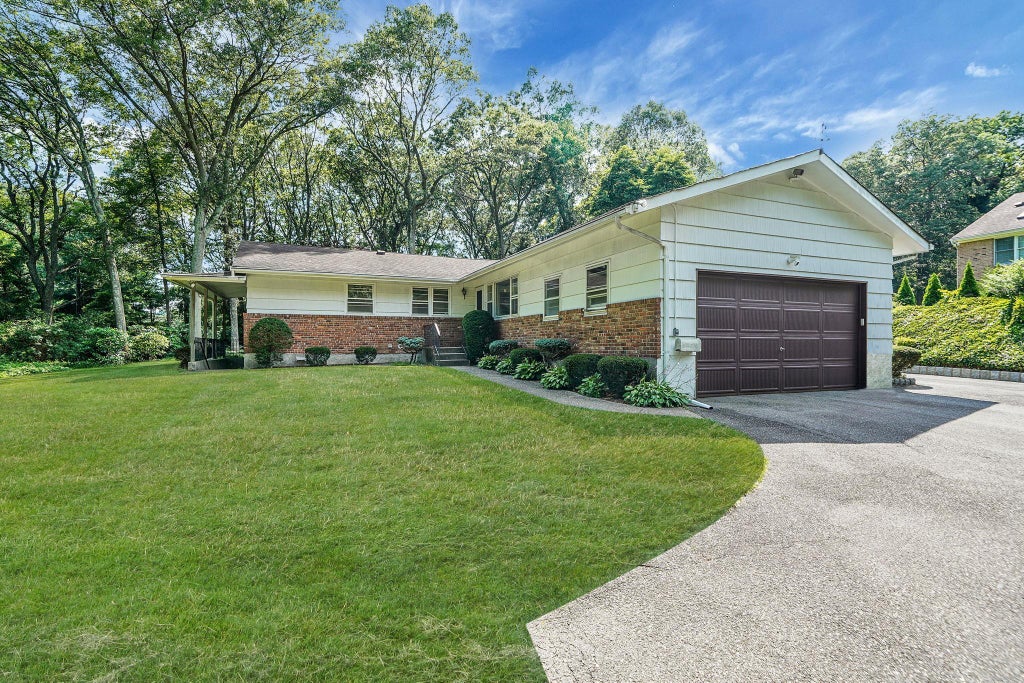 Welcome to this 3-bedroom, 3-bath Ranch located in the Town of Huntington, within the highly regarded Half Hollow Hills School District. Set on 1.37 acres of private, park-like grounds, this property offers the ideal blend of open space and natural beauty. The level backyard features lush, well-maintained grass, mature trees that offer a mix of shade and filtered sunlight, and a serene atmosphere perfect for relaxing, entertaining, or outdoor activities. Whether you envision a garden, patio, or a pool (with proper permits), this expansive lot provides a versatile canvas for future enhancements. Inside, the home features a spacious kitchen with sliders leading to the deck, a formal dining area, and a large living room with a striking stone fireplace as the centerpiece. A full basement offers additional living space and, with proper permits, may be suitable for an accessory apartment or mother/daughter-style layout. Additional highlights include a two-car garage and a peaceful setting in one of Dix Hills’ most desirable areas. While the home needs some TLC, it’s a rare opportunity to bring your vision to life on a truly special piece of property. Sold “as is.”
