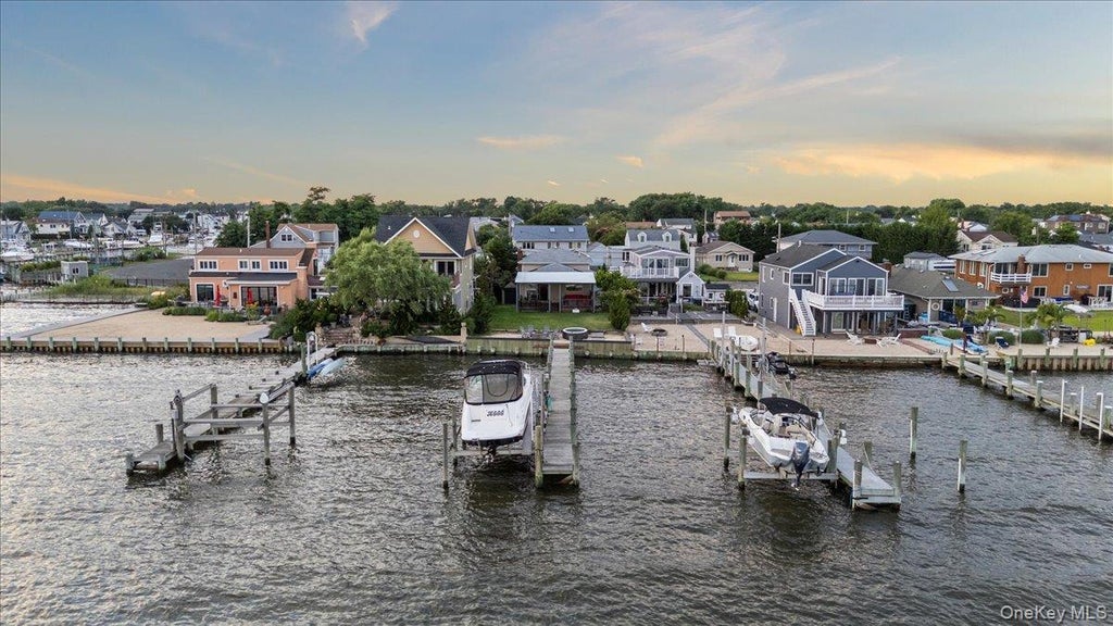 Experience waterfront luxury in the heart of the coveted American Venice neighborhood. This beautifully maintained 3-bedroom, 2-bathroom home offers stunning views of the Great South Bay and is a true boater’s paradise. Featuring a 10,000 lb motorized boat lift, 100-foot pier, and private beach, this property blends comfort, convenience, and coastal charm. Inside, enjoy a spacious eat-in kitchen, generous living room and den, and a cozy electric fireplace. The finished garage provides flexible space for entertaining or storage, and the large deck and backyard are ideal for gatherings, relaxing, and soaking in those breathtaking sunsets. Additional highlights include a large driveway, and thoughtfully designed interior layout that balances open spaces with private retreats. Updated floors, new refrigerator and updated boat dock wood panes. Whether you're entertaining, enjoying the view, or heading out on the water, this home offers the best of Long Island waterfront living.