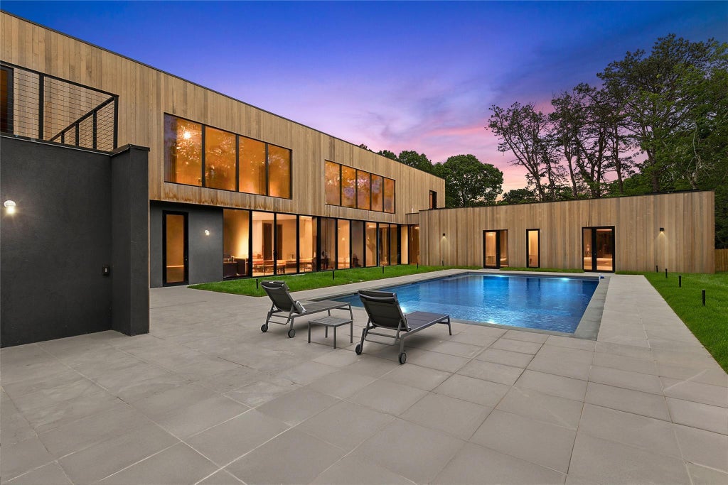 Experience a rare convergence of bold modern architecture and sustainable innovation in this newly constructed estate, perfectly sited on 1.1 acres of private, landscaped grounds. Built from durable concrete and spanning over 9,000 square feet across three levels, this residence features 8 bedrooms, 8 bathrooms, and 2 powder rooms, designed with an open, column-free layout that maximizes space and light. Wrapped in a super-insulated envelope, and powered by a full solar panel array, the structure can provide enough power to sustain the entire energy consumption of the house. A masterclass in seamless indoor-outdoor integration, the home showcases expansive floor-to-ceiling glass sliders and oversized windows that frame tranquil views and invite natural light into every space. The main level exudes modern elegance with 48" x 48" Italian porcelain tile and textured natural rock, while European oak flooring upstairs adds warmth to the minimalist aesthetic. Anchoring the dramatic great room is a full-height fireplace clad in imported Italian silver travertine, opening directly to a 20' x 40' heated gunite pool, pool house, and lush garden terraces, all designed for year-round enjoyment and privacy. Architectural design is by DXA Studio and built by XLIX builders with interior design by Atelier Rouje. At the heart of the home is a chef's kitchen by Italy's Arc Linea, featuring fossil-finish European oak cabinetry, Grigio Argentino marble countertops, a full suite of integrated Miele appliances, and a separate prep/butler's kitchen for effortless entertaining. Each of the seven bedrooms offers generous proportions and refined finishes, with the primary suite boasting a spa-inspired bathroom outfitted in Italian porcelain, white Carrara marble, and bespoke Italian fixtures. Additional amenities include a gym, provisions for a sauna, an outdoor kitchen, and a full suite of resort-style features - making this a truly rare modern masterpiece where architectural brilliance meets environmental consciousness.