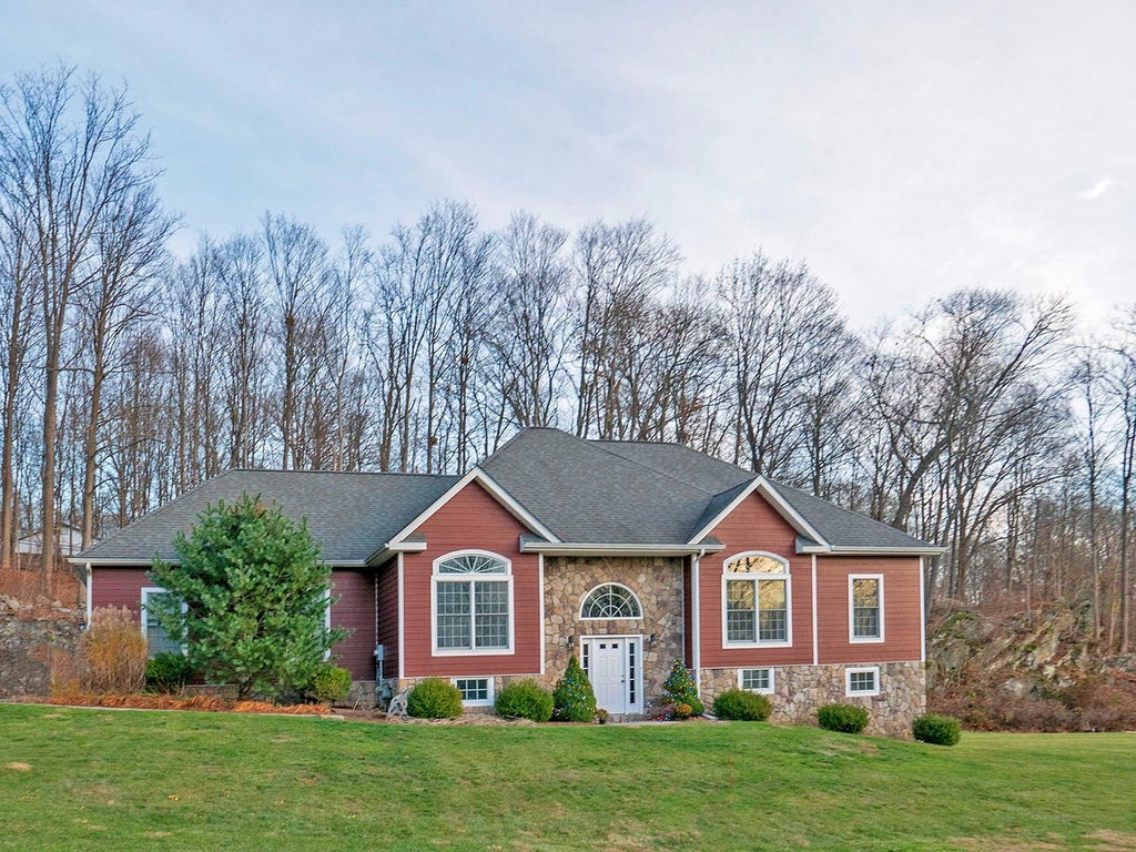 Handsome contemporary home on private cul de sac in area of upscale homes, with seasonal Hudson River and Catskill Mountain views. Open foyer with cathedral ceiling leads to living room with gas fireplace, well equipped kitchen, dining room, and breakfast area that opens to a rear deck. Three bedrooms, two full baths, (including master bath with jetted tub and separate shower), and laundry room complete the main floor. Walk out lower level includes third full bath next to an extra room, a huge open family room with wet bar, TV area, and play room, and a utility room. Beautiful wood floors are throughout the upper level (including new wood floors in the bedrooms). Features include natural gas HVAC and municipal water. Minutes to Rhinebeck Village, Metro North train station in Poughkeepsie, Culinary Institute, State Parks, and National Historic Sites (including Vanderbilt Mansion and the Home of FDR).