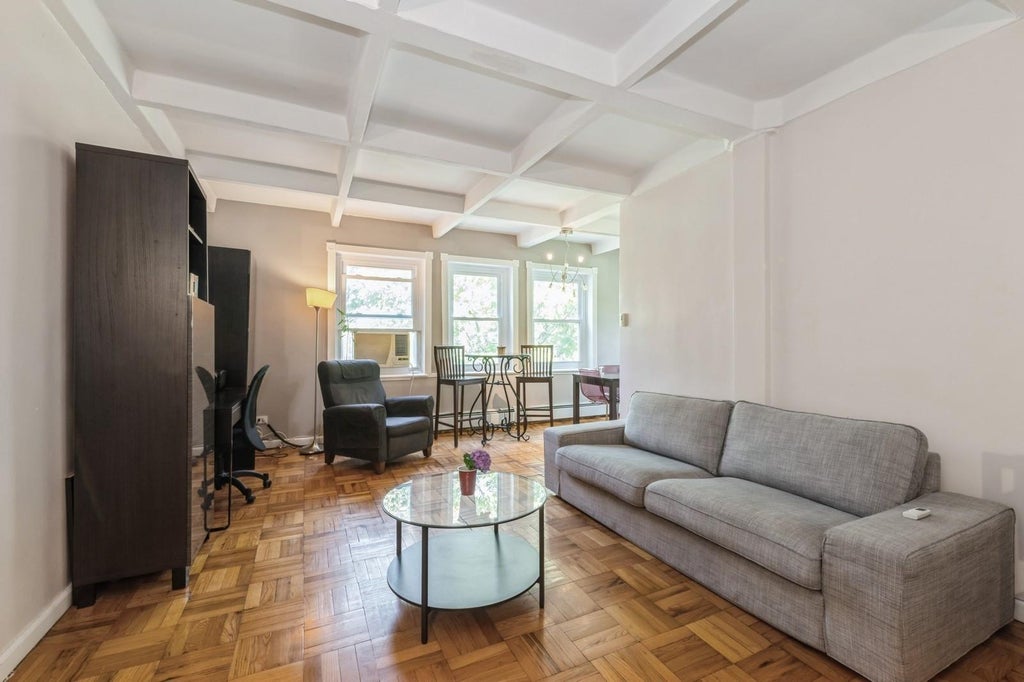 Discover an exceptional opportunity for homebuyers with this bright, south-facing one-bedroom co-op, conveniently located on the second floor. Boasting a private entrance, this desirable corner unit offers an open-concept layout accentuated by soaring ceilings, gleaming hardwood floors, and a solid concrete base, ensuring a peaceful living environment. Abundant natural light floods the space, highlighting its potential. While presenting a blank canvas awaiting your personal aesthetic, this home provides an incredible foundation. The kitchen is equipped with ENERGY STAR-rated stainless steel appliances, including a gas oven, dishwasher, and refrigerator, ready for your culinary endeavors. On the ground level, you'll also find a space perfect for a bench and gardening, offering a charming outdoor extension to your home. Residents of this pet-friendly complex will appreciate the convenience of multiple on-site laundry facilities, playgrounds, and a dedicated park. The co-op's prime location offers easy access to transportation, diverse shopping options, reputable schools, and essential hospitals. Please note, this co-op is subject to board approval and requires owner occupancy. (rentals are not permitted). Enjoy the added benefits of no flip tax and no assessments. This property is being sold "As Is."