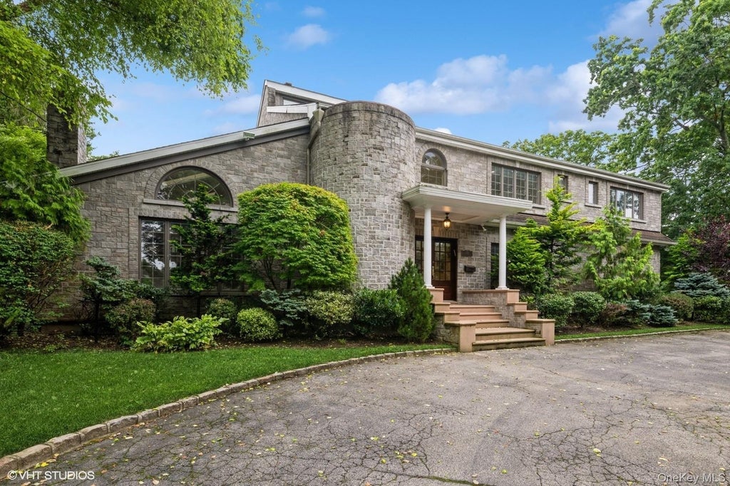 Elegant Stone Home with Modern Comfort and Timeless Charm A rare find—this stately stone residence pairs classic architectural beauty with today’s most desirable amenities, all set amid lushly landscaped grounds. Experience the perfect blend of timeless elegance and contemporary convenience in this stunning home. Surrounded by mature shrubbery, outdoor lighting, and a multi-zone underground sprinkler system, it is as inviting outdoors as it is inside. On the main level, an airy and thoughtfully designed layout caters to both everyday living and gracious entertaining. The gourmet kitchen flows seamlessly to a formal dining room, an elegant living room with fireplace, and a cozy den. A powder room and a guest suite with its own private bath offer comfort and flexibility. The pantry hallway features floor-to-ceiling custom cabinetry and a second refrigerator for effortless storage. An expansive office/library, appointed with cherry wood built-in bookcases, filing cabinetry, and radiant heat, offers the ideal space for work or study. The finished basement includes a bedroom, full bath, multiple storage rooms, and a laundry area with generous cabinet space. Upstairs, the luxurious primary suite is a private retreat with a serene sitting area, two walk-in closets, and a spa-inspired bath. Three additional bedrooms—one with an ensuite bath—plus a stylish hallway bathroom complete the level. Practical features abound, including a heated two-car garage with epoxy flooring, a private underground water well, and a five-zone heating and cooling system for year-round comfort. A central station alarm system ensures peace of mind. With its combination of luxury, comfort, and functionality, this remarkable stone home offers privacy, beauty, and a sense of retreat—perfect for those who value both elegance and everyday ease.