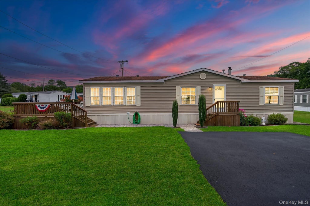Step into this beautifully designed manufactured home that combines comfort, style, and convenience. Street facing so the small community behind the park goes unnoticed. So close to downtown amenities, and many other perks. Bright and spacious with wide, high ceilings and skylights, this home is filled with natural light, creating an inviting and airy atmosphere. The open layout features an Eat-in kitchen with plenty of counter space, a bar countertop perfect for casual dining or entertaining, and a formal dining area for special gatherings. Offered fully furnished, every detail has been thoughtfully designed to provide a turnkey living experience. This is a rare opportunity to own a move-in ready home that blends modern charm with everyday functionality. The large deck is a nice place to take in the sun and relax or entertain. Very quiet and comfortable with full new driveway, lush green front yard beautifully maintained. Gorgeous Mountain views- country living but not too far from city life. This move-in ready home comes with Washer and dryer in the small laundry room off the kitchen and is in excellent condition.
