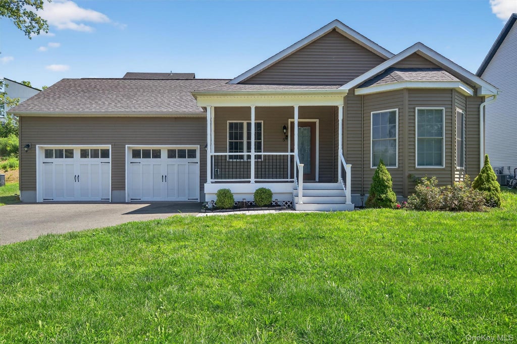 READY TO MOVE IN! This three bedroom ranch offers the ease of one level living! Upgrades throughout include decorative glass entry door, trex front porch, custom built in, upgraded bathroom vanities, ceramic tiles and faucets, 8'6" ceilings. Kitchen features farmhouse sink, 42" custom cabinets w/glass topped display, spacious island w/quartz countertops + large eat-in dining area. Master ensuite + 2 additional bedrooms, can double as office/guest room w/sliders to yard. Wide plank, textured hardwood floors throughout the first floor & in master bedroom. Central air, full basement w/8ft ceilings and egress windsow, 2 car gararge. Municipal services, natural gas heat too!! Great commuter location, min. to thruway(87), I-84, shopping and public transportation.