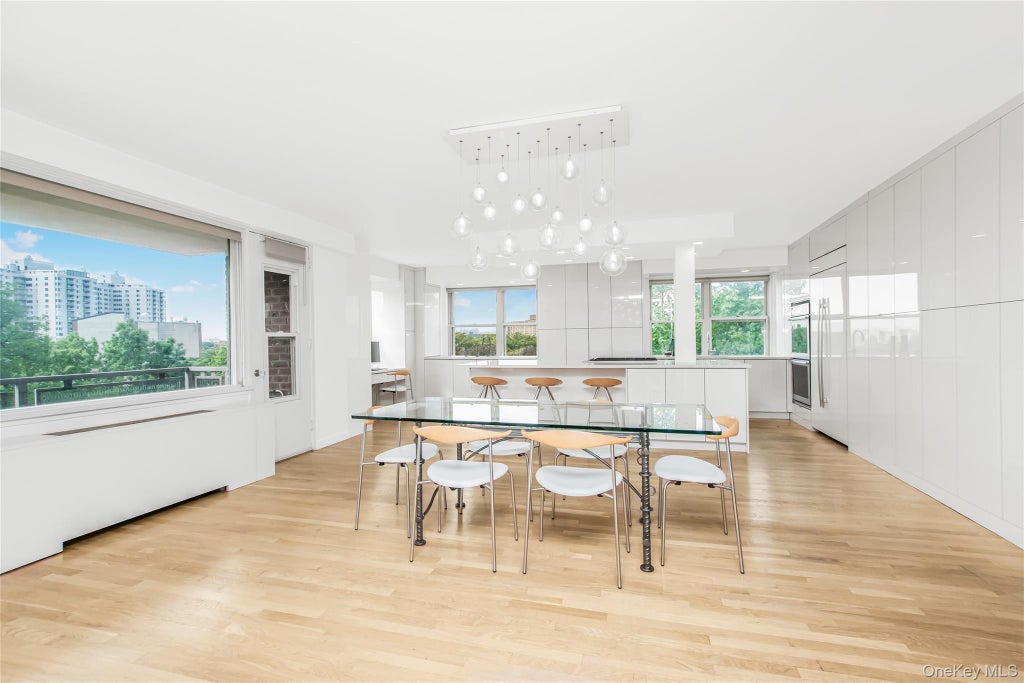 Come discover the crown jewel of Hudson Tower! This beautifully reimagined residence, originally a three-bedroom, has been thoughtfully reconstructed into a spacious two-bedroom, two-bathroom home with an expansive private terrace. The open layout and modern design evoke the feeling of a Tribeca loft, blending sophistication with comfort. Included is a deeded garage space on the upper level, adding both convenience and value. The chef’s kitchen is truly a showstopper — showcasing gleaming white quartz countertops, a massive 10' x 4' island with seating, and an abundance of custom white gloss cabinetry. Top-of-the-line appliances include a Thermador stovetop, built-in refrigerator, JennAir double ovens, built-in microwave and warming draw, double sinks, and two built-in dishwashers. A dedicated built-in office area adds modern functionality to the space. The sun-drenched living, dining, and kitchen areas feature beautiful wood floors and benefit from south and west exposures, filling the home with natural light throughout the day. Oversized windows and recessed lighting create an inviting ambiance, while the dining area easily accommodates large gatherings. Direct access to the gigantic private terrace creates the ultimate space for entertaining, relaxing, or dining al fresco. The master suite is a retreat in itself, offering massive his-and-hers walk-in closets and a luxurious exceptionally large en-suite bathroom with double sinks, porcelain tile finishes, and a walk-in shower stall complete with bench seating and multiple shower heads. Additional highlights include nearly 8-foot doorways, built-in speakers in both the living room and master bedroom, abundance of built-in custom cabinetry for storage, and custom covers for the HVAC units — thoughtful details that elevate both style and comfort. Monthly maintenance conveniently includes indoor parking, gas, electric, central A/C and heat, and water. Hudson Tower amenities enhance your lifestyle with a 24-hour doorman, seasonal pool, bicycle and regular storage, garage parking, and a playground. This prime location is steps from restaurants, shopping, parks, schools, and public transit, including local/express buses. Plus, the Spuyten Duyvil Metro North Station nearby makes commuting to Grand Central a breeze in under 25 minutes. This is a rare offering that combines luxury, functionality, and style in one of the most desirable buildings — a must-see!