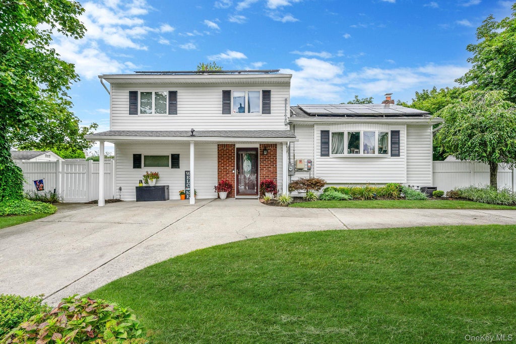 Welcome to your dream home, a beautifully updated property powered by natural gas with hardwood floors throughout and plenty of natural lighting! Recent renovations completed in 2023 have transformed this residence, ensuring modern comforts with essential features such as a new hot water heater installed in 2022, a central air conditioning system added in 2024 and updated vinyl siding (2024). This home offers great potential for a mother/daughter setup (subject to proper permits), showcasing a possible in law suite with a separate entrance. With three spacious bedrooms, two bathrooms and an additional bonus room, flexible living spaces cater to all your needs. A full basement with laundry facilities enhances practicality, while solar panels ensure energy efficiency and low electric bills. Outside, enjoy a stunning backyard oasis complete with beautiful masonry landscaping, in ground sprinklers featuring a smart timer and permanent custom outdoor lighting. The circular driveway provides ample parking and the prime location offers convenient access to Stony Brook University, the Port Jefferson Ferry, and the Long Island Rail Road (LIRR). Don’t miss this chance to make this exceptional home yours!