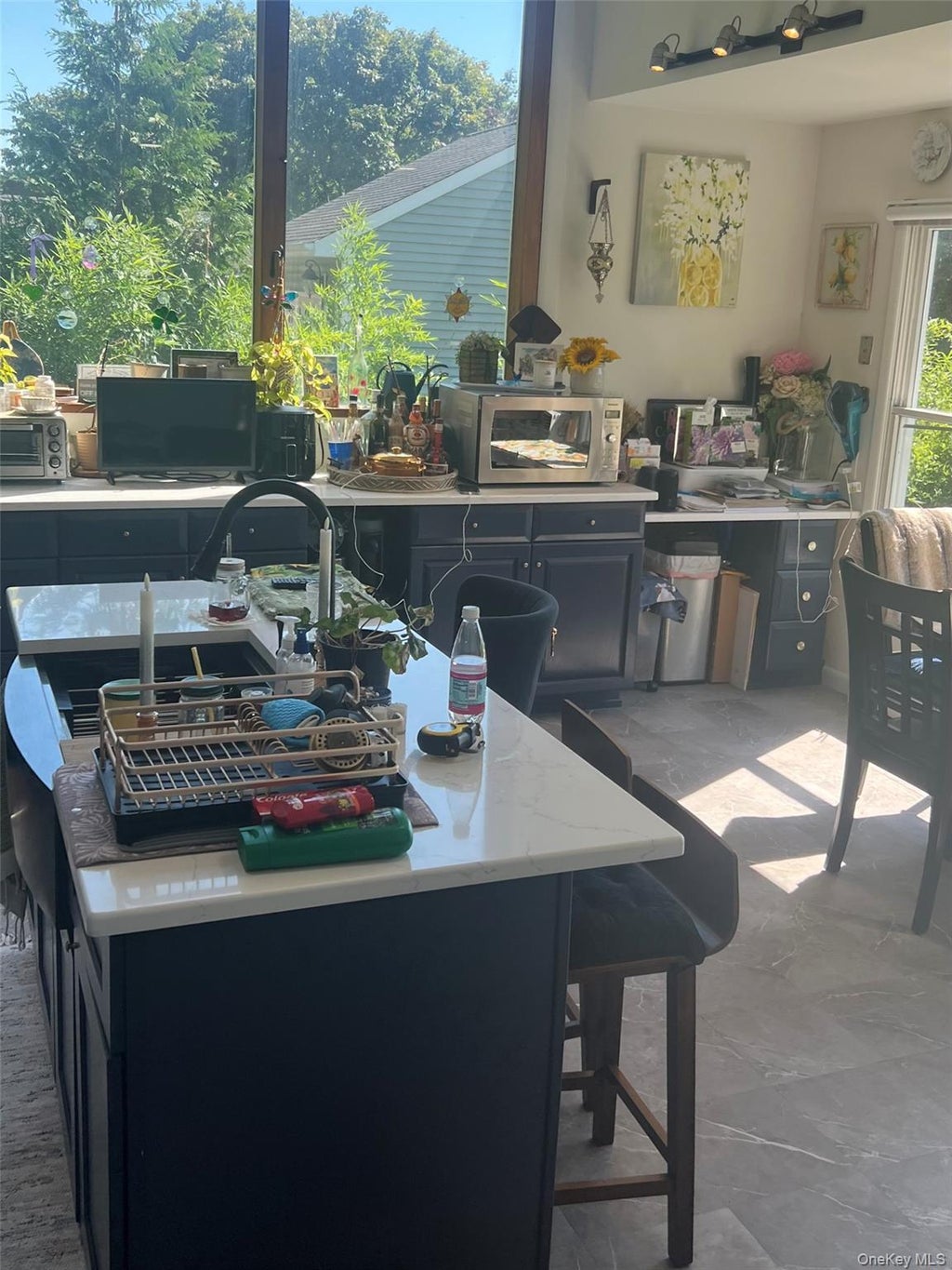 This 4-bedroom colonial is located in Port Jefferson and offers sweeping views of the harbor. The master suite, located upstairs, includes panoramic water views, a walk-in closet, and a full bathroom with a whirlpool tub and standing shower. Two additional bedrooms and a separate full bathroom are also located upstairs. The home features three original wood-burning fireplaces: one in the living room that is functional and two in bedrooms that remain decorative only for safety. The kitchen has been newly renovated with an open floor plan, center island with seating, large windows overlooking the harbor, and high ceilings with a ceiling fan. A sliding glass door provides access to the sunroom and private patio. Additional features include a washer and dryer, outdoor fire pit and grill, dual driveways, and a private path leading to a dog-friendly beach. The property is conveniently located near Mather and St. Charles Hospitals, local universities, Port Jefferson School District, Port Jefferson Country Club, and is within walking distance to the village center, shops, restaurants, and the ferry. Rental Terms: $5,400 per month. Tenant is responsible for all utilities, plus a $60 monthly garbage fee. Pets may be considered with owner approval and may require an additional fee. At lease signing, one month’s rent, one month’s security deposit are due.