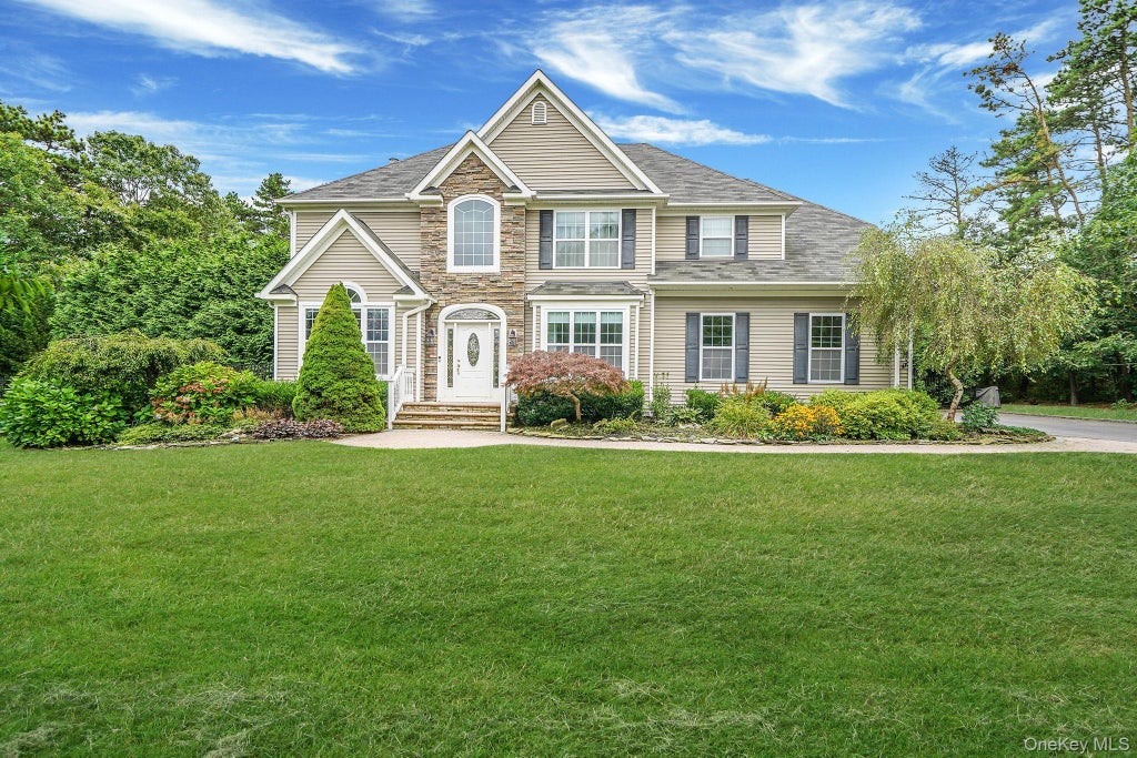 Welcome to this beautiful 4-bedroom, 3-bath Colonial featuring soaring vaulted ceilings as soon as you step inside, that fill the home with natural light and create a bright, open feel. The inviting living room features a cozy wood-burning fireplace, while the gorgeous eat-in kitchen is perfect for both everyday living and entertaining. Upstairs, the dream primary suite offers a huge walk-in closet and full bath. A full unfinished basement provides endless possibilities.Nestled on a corner lot in a quiet cul-de-sac, the 1 acre property boasts a perfect pool, and backs to a wooded area, offering more peace and privacy.
