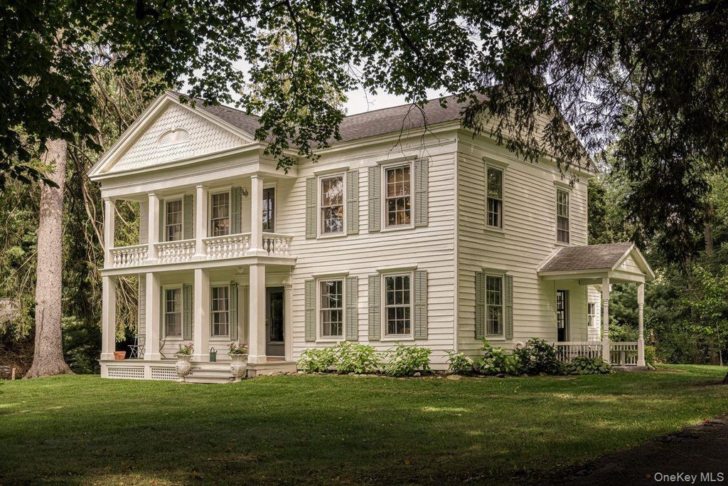 A fabulous example of early Hudson Valley architecture, this c1840 Greek Revival farmhouse sits on three rolling green acres of meadow and gardens. Old growth maples dot the landscape, the property is just 5m from the vibrant city of Hudson but a world away. Its stacked covered porches are framed by classic columns, and gorgeous six-over-six windows are lined with the home’s original shutters. Inside you’ll find wonderfully high ceilings and wideboard plank floors, four bedrooms and three full baths. So many fabulous original details have been preserved, and so much charm added over the home’s long life. The kitchen is large and gracious, with a gas stove and fireplace. The living room has a fabulous onyx mantle and walks out to a private back yard. You’ll find a pergola draped with wisteria and a garden shed/studio perfect for projects or creative endeavors. Upstairs, four large bedrooms are all fabulously stylish, light filled and spacious. 24 Van Wyck is architecturally stunning & ideally located, minutes outside of Hudson, just 8m to Amtrak and 2h north of NYC.