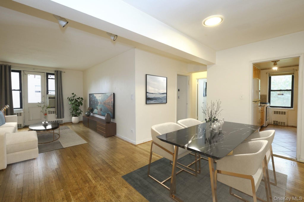 Spacious 2-Bedroom Corner Unit Co-op in Prime Flushing Location Discover the potential in this 2-bedroom, 1-bath corner unit co-op located in a PET FRIENDLY desirable gated community in the heart of Flushing. One of the largest units in this development. This home features classic hardwood floors, a large kitchen, dining area, and generously sized bedrooms that provide plenty of comfort and flexibility, each with a large closet. In fact this unit has plenty of closet space. One of the most unique features of this property is the open space above the garage with a distinctive entry door—you have to see it. Being a corner unit this apartment has windows on 2 sides allowing for plenty of natural light. While the unit does need some updating, it offers a fantastic opportunity to create the home of your dreams. Being tucked away on the corner of the first floor there is no one underneath you. This is one of the only gated communities in the area. This coop is pet friendly. Made up of a beautiful quite peaceful safe private well maintained courtyard, 24/7 security, clean grounds, excellent maintenance staff, Bike/Storage Rooms, Laundry Rooms, and best of all NO Flip tax. Subletting is allowed after two years of ownership. There are indoor parking spaces that are available to purchase separately. Maintenance includes everything but electric. This coop has a discounted cable plan you can purchase separately. You cannot beat the location. Enjoy the convenience of being close to shopping, dining, schools, and transportation. There are 3 bus lines a one block walk from this apartment, and short bus ride to the LIRR. If you dont know this area you must check it out. Bring your vision and take advantage of this rare opportunity to own a spacious co-op in one of Queens’ most sought-after neighborhoods.