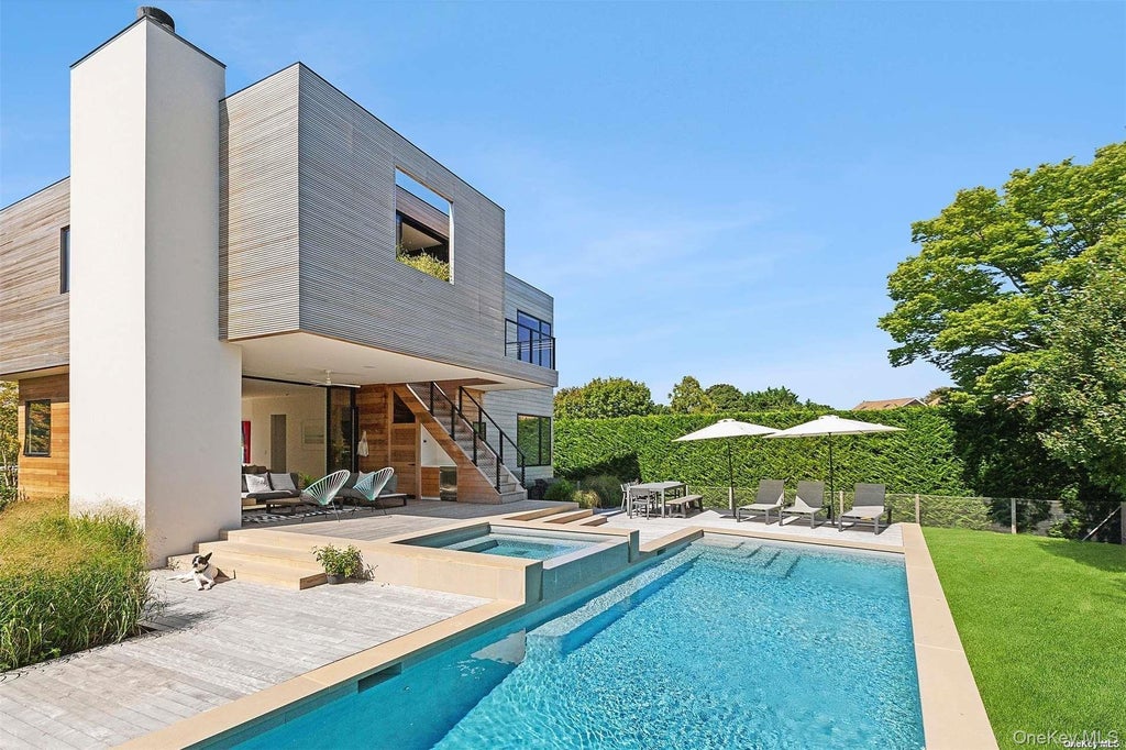 Welcome to a home entertaining experience like no other in the heart of Westhampton Beach Village, less than a half a mile from Main Street and a stone's throw to the village beaches, marina, and more! Where water views meet modern luxury, this home offers 4500 SF of custom exquisite craftsmanship by Coastal Management. Offering six bedrooms, six and two half bathrooms, open living spaces flooded with natural light, water views, wide white oak flooring throughout, floor to ceiling windows and doors, designer details & finishes and a plethora of space for family & friends. The upper level boasts the primary bedroom suite with private sunset viewing deck and hidden outdoor shower, there are two additional ensuite bedrooms and a media room. This level hosts the custom crafted Chef's Kitchen, with seamless cabinetry, top-of-the-line appliances, wet bar & wine refrigerator and oversized island with granite countertops. The open living and dining room offer access to another viewing deck with views to Dune Road and beyond. On the lower level there is an additional ensuite guest bedroom, plus a separate guest wing featuring a full kitchen, living room & den. With ample room and access to the outdoors, bonus features include, outdoor shower, fireplace and a garage. The exterior grounds, architecturally landscaped and designed, include a heated gunite saltwater pool & spa, covered porch & patio, BBQ and large private driveway. The opportunity to enjoy this unique & flawless work of art will not last long, now available August 2026!