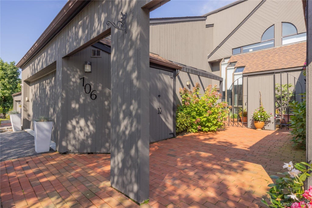 Pinnacle perfection at Stone Oaks, Hartsdale, NY. Unique, quiet and private gated complex set on over 50 acres of park-like grounds, with a 24 hour security gatehouse. This stunning 3 level unit is move-in ready with drop-your-bags finishes throughout. You'll fall in love the minute you approach the front patio that shines for it's welcoming plantings, flowers and flowering trees. First floor details include a lovely foyer, renovated 1/2 bath/designer finishes, MEIK renovated for every chef with stainless appliances, quartz counters, porcelain farmhouse sink, custom wood cabinets and a serene breakfast room that looks out on the front patio from floor to ceiling windows, dining room, formal living room w/picture windows, sliders to deck, and first floor bedroom w/closet. Second floor primary suite/renovated primary spa bath/oversized walk-in shower/custom cabinetry/soaking tub, new fixtures. Bedroom w/double closet and access to walk-in attic. Renovated full bath. Walk-out finished lower level/sliders to patio, legal full bath. Don't miss out on the beautiful greenspace behind this unit, with a towering willow tree and an expansive lawn. Two car attached garage, gleaming hardwood floors, HVAC. Wonderful complex amenities include clubhouse, tennis courts, pool and palyground. It's an enviable lifestyle in Westchester County, close to all shopping, dining, outdoor and indoor recreation and so much more.