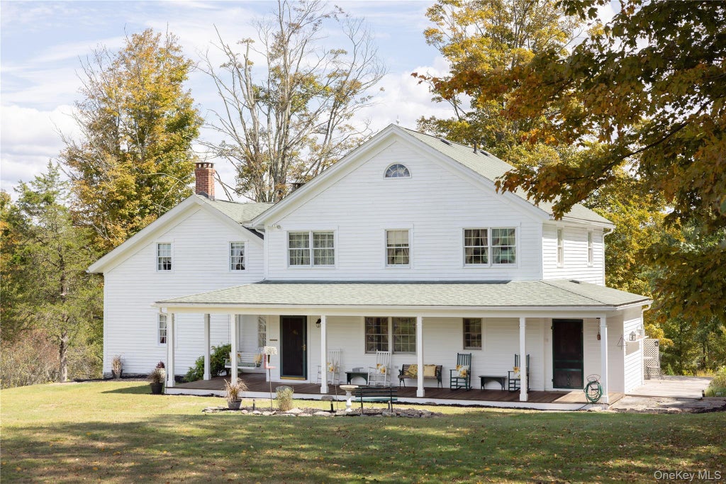 Goldenrod lines the quiet roads that wind through the countryside to reveal a beautiful, just painted, farmhouse with an impressive front porch. Set on over 30 acres with rolling hills, meadows, and woods, this lovingly cared for home has enough updates to be move-in ready - and a enough history to transport you to another time. It is both practical and dreamy - with stunning original wide plank floors, hand hewn beams, and an abundance of original detail. Every corner of this home feels thoughtfully curated and there are plenty of nooks and crannies to lose yourself in. A charming eat-in-kitchen is perfect for your day to day, while an elegant formal dining room sets the stage for hosting friends and family for gatherings. The first floor also has a primary suite, laundry and a mud room - the perfect landing spot after a long day out and about! Head upstairs to find the remainder of the home’s spacious bedrooms and a fun flexible guest suite that features a cozy den, full bath and lots of possibilities for a home office, studio or a private retreat within your own home! Downstairs has a set up that is a nod to the 1800's history of the home with the original hearth and kitchen reminiscent of times past. The stone fireplace has a wood stove insert and a bread warmer built into the stone work. A half bath, work shop and a one car garage complete this unique lower level. Picture perfect and situated on 30 idyllic acres made up of rolling hills, woods to explore, wildflower meadows and vast fields - this farmhouse is the ideal setting for the homestead of your dreams. Slivers of the Catskills peek through in the distance and old stone walls dot the property. It’s easy to imagine evenings on the front porch watching the sun set. A two bay garage with a loft space completes the offering. This bucolic location has you immersed in nature but still conveniently close to many great destinations in the area. Bethel Woods is 20 minutes away featuring incredible summer line-ups and fun events. Venture a little further from home and you will find amazing options for dining, shopping, farmer’s markets and entertainment in Livingston Manor, Callicoon, Jeffersonville and Mountaindale! It's easy to enjoy the outdoors with plenty of fishing, hiking, and swimming in the area and you are just under 100 miles to the GWB in NYC.