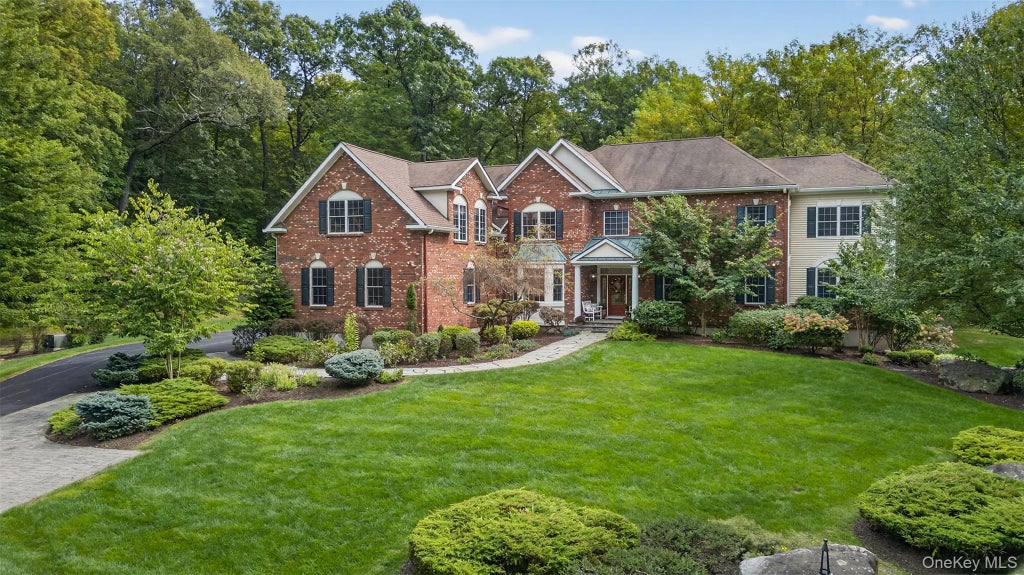 Nestled in one of Cornwall’s most sought-after cul-de-sacs, Chadeayne Woods, this stately brick colonial offers nearly 6,000 square feet of luxurious living space and the perfect combination of privacy, craftsmanship and elegance. Tucked behind a gated entry, a quarter-mile paved driveway winds through 26 park-like acres to your own peaceful retreat. Cleared paths invite you to explore, while three fenced acres surrounding the home provide plenty of room to roam. This one-owner home was custom built, professionally decorated and inspired by a love of entertaining with ample space for guests - both inside and out! The open floor plan blends formal and functional spaces beautifully while remaining uniquely comfortable and inviting. Hardwood floors run throughout the main level and exquisite millwork - including stained glass transoms and French doors - accent the living and dining rooms opening to a music room/study. The two-story family room is anchored by a striking stone fireplace flowing seamlessly into a stunning sunroom, out to a party deck and down to a slate patio overlooking the large, level backyard. At the heart of the home, the chef’s kitchen impresses with rich wood cabinetry, stainless steel appliances including a Viking cooktop with pot filler, unique mosaic tile backsplash, cooling drawers, double oven, wine refrigerator, a quartz-topped center island and two walk-in pantries. A first-floor study with a full bath offers a comfortable work-from-home option. Upstairs, the massive primary suite wing is a true standout, providing a peaceful sanctuary with a cozy window seat, built-in bookshelves and a private sitting room. The spa-inspired bathroom features dual sinks with custom cabinetry, a stylish tiled shower and an oversized cast iron tub. A jaw-dropping custom walk-in closet, filled with natural light from a wall of windows, is unmatched. Down the hall you’ll find another ensuite bedroom and a guest wing with two additional spacious bedrooms and full bathroom. The finished walkout basement boasts the fifth full bathroom and a three-car garage, custom built shed and spacious mudroom/laundry off the driveway are just more highlights of this exceptional property. Experience it all in a tranquil, storybook setting within the Cornwall school district - complete with natural gas, municipal water and an ideal commuter location just minutes to highways, train, bus, village amenities, restaurants and all the best of Hudson Valley living.