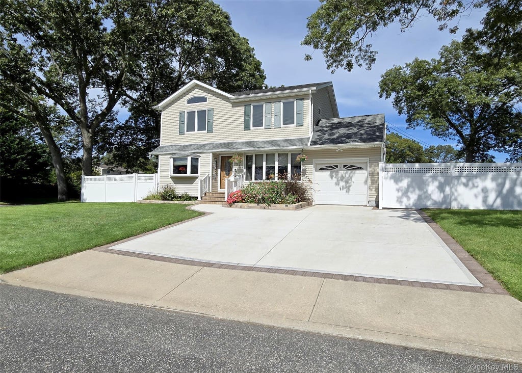 Welcome to this spacious 4 Bedroom, 2 Full Bathroom home that blends comfort and style. Inside you'll find Hardwood floors throughout an oversized family room with a natural gas fireplace. Eat-in-Kitchen features granite countertops & backsplash, recessed & undermount lighting, and stainless steel appliances. Formal dining room provides an ideal setting for hosting and entertaining. Upstairs bathroom is 2 years young. Cesspool (2021), gas heating and central air conditioning. Step outside to enjoy a beautiful backyard with custom pavers and maintenance free vinyl fencing. In-Ground sprinklers. This home has amazing curb appeal and a warm inviting feel, both inside and out.