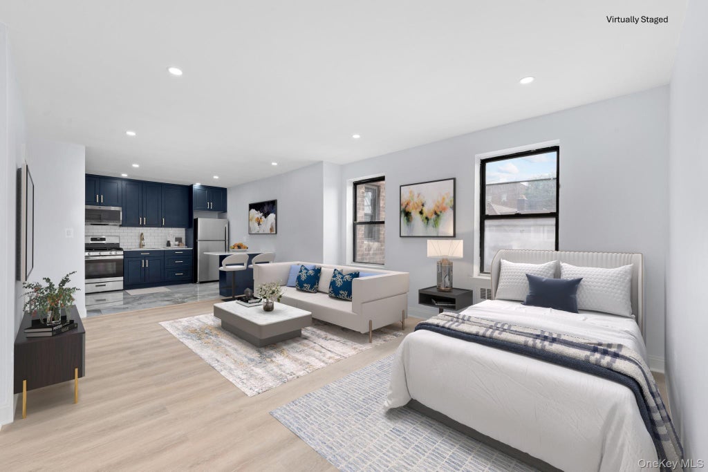 $5,000 Closing Credit Available! Don’t miss out — ask me how! Own a luxury space for less than the cost of renting! Gut Renovated Studio with High-End Finishes for Sale. This stunningly gut-renovated studio is a perfect blend of style and functionality. Every detail has been thoughtfully curated, from the brand-new floors to the recessed lighting throughout. The sleek kitchen features stainless steel appliances, a subway tile backsplash, elegant marble flooring, and eye-catching blue cabinets with gold hardware. Enjoy an abundance of natural light through multiple windows, making the space feel bright and airy all day long. The oversized, spa-like bathroom is a true retreat, complete with a glass sliding door, neutral tones, and a massive walk-in closet for all your storage needs. Move-in ready and designed to impress—this is a must-see to truly appreciate the high-end finishes and craftsmanship throughout. Nestled in the vibrant Jackson Heights neighborhood, Monticello Gardens is a conveniently located six-story, 167-unit elevator building erected in 1951. Situated on a serene tree-lined block, it offers a host of amenities, including parking (waiting list), laundry facilities, bicycle storage, and a live-in super. Pets are welcome, and subletting is permitted after two years, subject to board approval as per house rules. Within a short distance of local amenities and transportation, residents can relish easy access to dining, shopping, and entertainment options. The building is well-maintained with no flip tax.