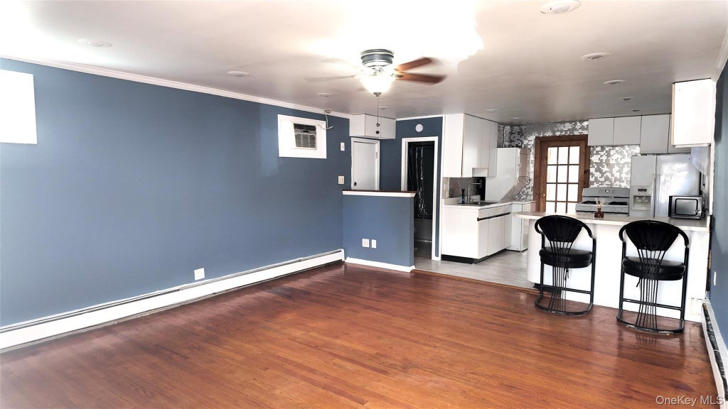 Great Throggsneck location this 1 bedroom 1 bath ranch style home has an open floor plan with a large living room hardwood floors, eat in kitchen has center island and recessed lighting, laundry area , large bedroom with plenty of closet space, walk out from a side entrance to the yard, tenants pay all utilities, including water & outside maintenance and snow removal, no smoking, pets permitted with owners approval, must have 700 credit , close to major highways.