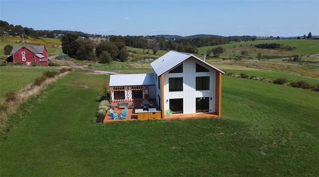 Welcome to “Long Farm”. Begging to be the backdrop of your most memorable moments, this newly constructed custom designed home is your country house dream come true. Perfectly set back off a quiet country road and perched on a knoll on 5+ acres with fabulous meadow and mountain views from nearly every room, this one checks all the boxes. 4 BR’s 3.5 BA’s, primary bedroom with gorgeous bath and walk in closet and sliders to outdoor deck is on main level and a second suite plus two more bedrooms occupy the upstairs. Lots of glass lets in an abundance of natural light, while soaring cedar-lined ceilings, wide plank white oak flooring and a really cool suspended Aurora Aether wood burning fireplace set the tone with a cozy and classy vibe. The amazing open plan with island kitchen is perfectly appointed for entertaining friends and family. Sliders off the dining area give way to an outdoor space that will never disappoint. Taking advantage of the gorgeous view and glorious sunsets, there is an outdoor kitchen, fire pit and shower which are just a few of the extras this talented developer has added to this home. Full basement offers an additional 1200 SF with 10’ ceilings. Long Farm is a new development of specially curated homes with fresh clean lines, warm wood accents, locally sourced materials and quality workmanship. Amenities are yours to choose and may include a clubhouse, gym, walking trails, pool, tennis and more. Near to area attractions including the Delaware River, Bethel Woods, breweries, cideries, dining, skiing, lakes, hiking trails, and everything the Sullivan County Catskills has to offer. More Amazing lots and plans available to suit your personality and needs. Additional Information: Amenities:Guest Quarters,Storage