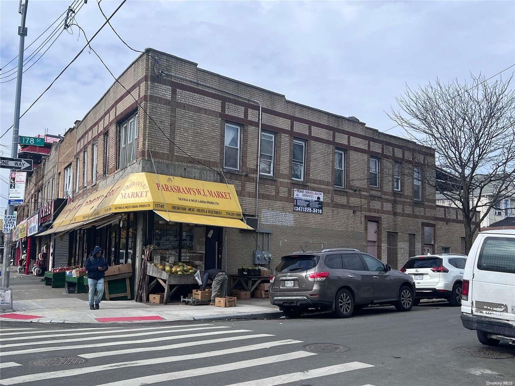 Mixed Used; Corner Property; First Floor is currently used as a grocery store; Second floor has a 3 bedroom apartment; Comes with a 2 car garage. Located on Jamaica Avenue with exposure to high car and foot traffic. Currently the commercial space consist of 1,600 sq ft while the residential unit is 1,260 sq ft. Can build an additional 4,048 sq ft.