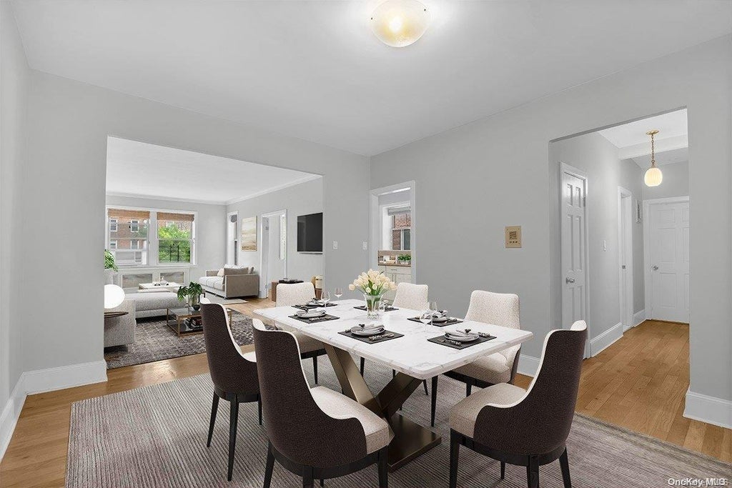 Welcome to a unique opportunity in the heart of Jackson Heights. This beautifully renovated corner two-bedroom apartment blends modern comfort with timeless charm. As you step inside, the original, refinished hardwood floors set a warm and inviting tone, leading you through a spacious living room designed for both cozy nights in and lively gatherings. The thoughtfully updated kitchen, with its sleek granite countertops and high-end stainless steel appliances, inspires culinary creativity. Unwind in the serene bathroom, featuring a classic soaking tub that invites relaxation. With ample storage throughout, this home is as functional as it is stylish, enhancing the sense of space and comfort. The Griswold Building Embrace the elegance of the Griswold, a 1937 Art Deco masterpiece that stands as a testament to architectural excellence. Nestled on a peaceful, tree-lined street within the Jackson Heights Historic District, this six-story building, designed by Joshua Tabatchnik, greets you with a grand, detailed lobby that exudes sophistication. Residents benefit from a live-in superintendent, full-time porter, and an array of amenities including a playroom, laundry room, bike storage, and extra personal storage. The lush private garden, complete with tranquil fountains and inviting seating areas, offers a serene escape from the city's hustle. For pet owners, the building's private pet run adds a layer of convenience and community. Location Perfectly positioned for both convenience and leisure, this home is located just 2 miles from LaGuardia Airport, making travel easy. The neighborhood offers a vibrant mix of shopping and dining options, including the Queens Center Mall and local markets. The nearby 7 train provides swift access to Manhattan, ensuring an effortless commute. Additionally, Flushing Meadows Corona Park offers expansive green spaces and recreational opportunities, adding to the lifestyle appeal of this exceptional property., Additional information: Interior Features:Lr/Dr